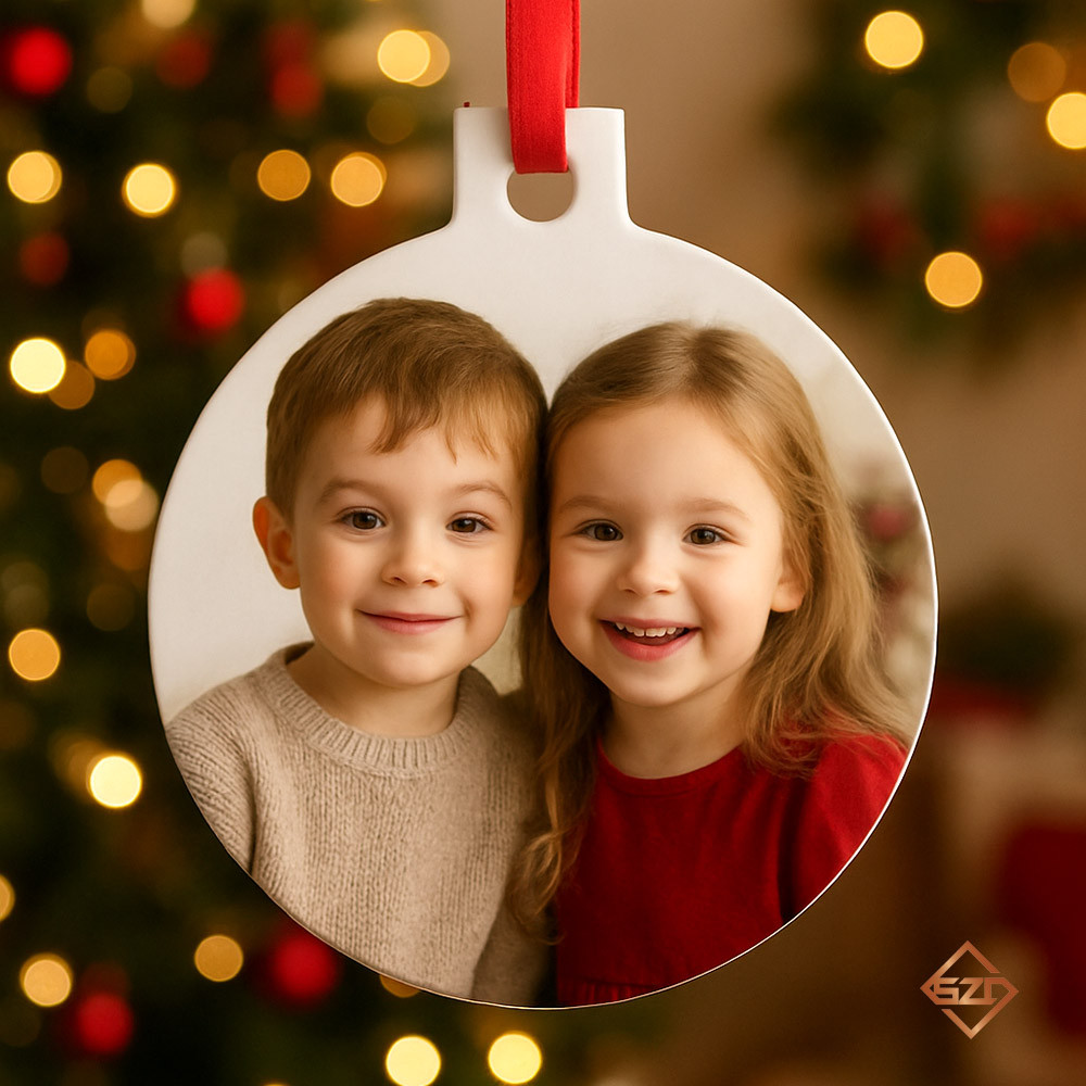 Személyre szabott akril karácsonyfadísz gyerekek fotóival
