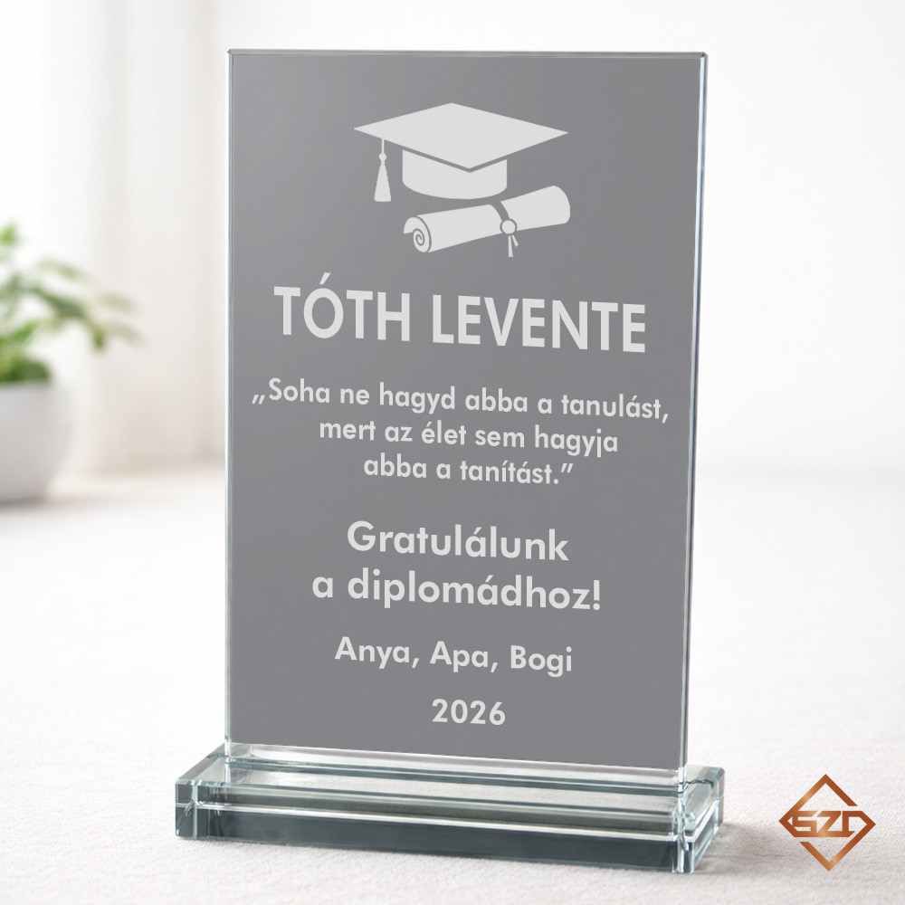 Ez az elegáns kristály dísz tökéletes ajándék diplomázó diákoknak vagy bármely fontos tanulmányi mérföldkő megünneplésére. Az üveg díj letisztult formavilága és klasszikus megjelenése prémium benyomást kelt, miközben a hozzá tartozó elegáns díszdoboz gondosan védi és emeli ki a díjat.
