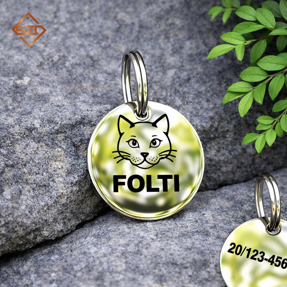 Tartós, tükörfényes, kétoldalas gravírozható azonosító biléta macskáknak.