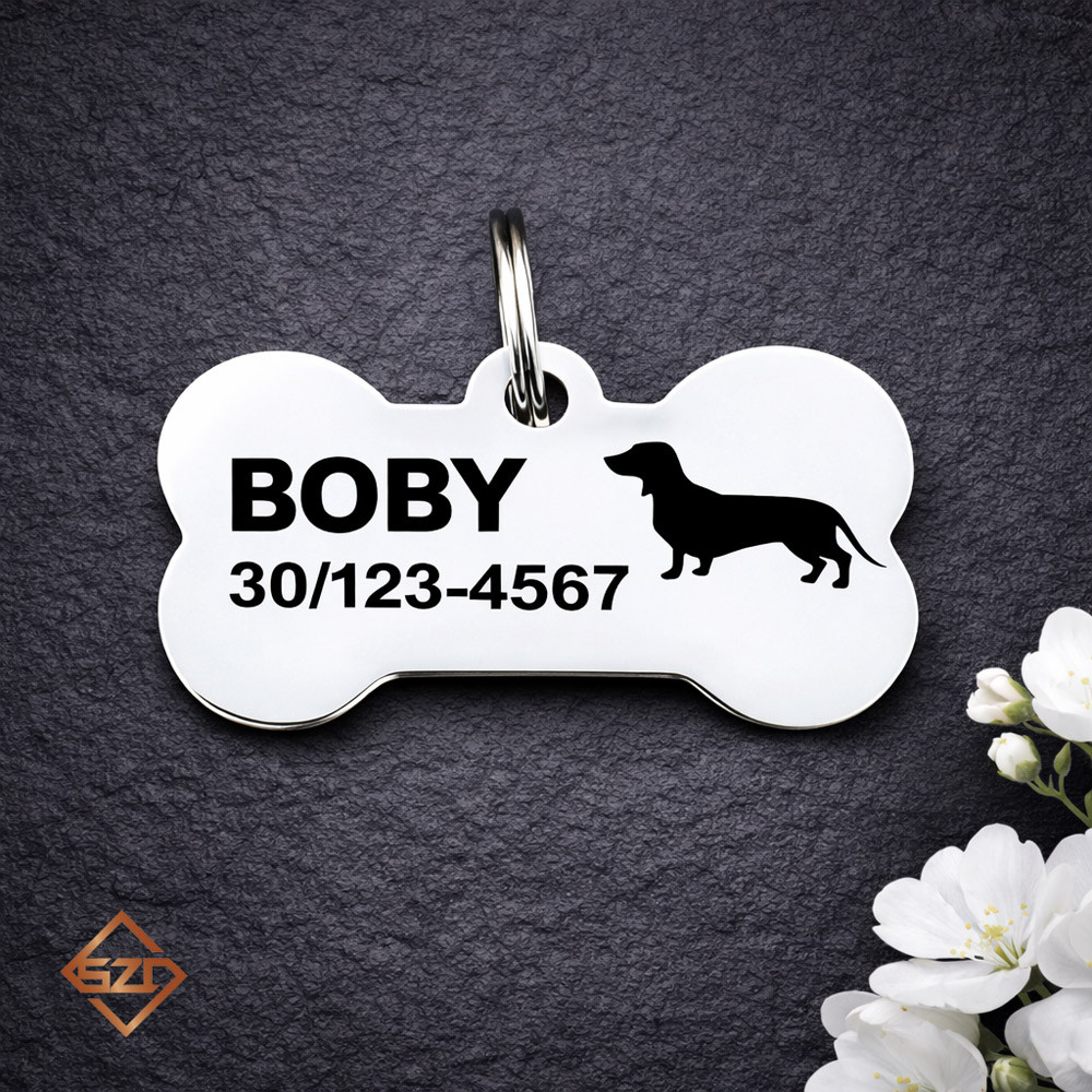 Adj kedvencednek biztonságot és stílust ezzel a prémium minőségű, nemesacélból készült Tacskó kutyabilétával! A polírozott acél felület modern megjelenést biztosít, miközben rendkívül tartós. A biléta lézergravírozással személyre szabható, így rákerülhet a kutyád neve és a telefonszámod is – garantálva, hogy ha négylábúd elkóborolna, gyorsan vissza tudjon jutni hozzád.