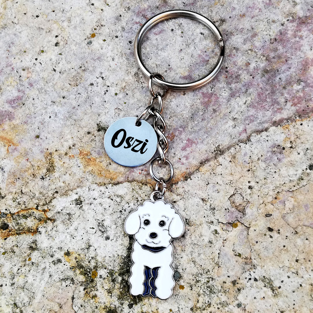 Uszkár kulcstartó gravírozott acél charmmal és saját névvel